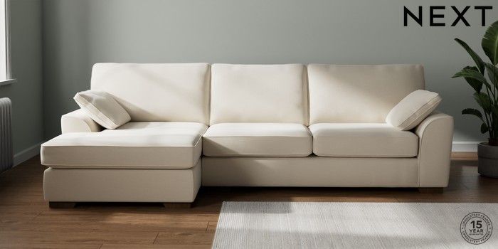 7.2.10 Buy Stamford Large Sofa Chaise - Left Hand Ripple Chenille Mid Moss Green Large Square Angle - Mid from the Next UK online shop Click here to use our accessible website