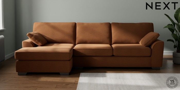 7.2.10 Buy Stamford Large Sofa Chaise - Left Hand Ripple Chenille Mid Rust Brown Large Square Angle - Gunmetal from the Next UK online shop Click here to use our accessible website