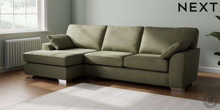 6.12.1 Buy Stamford Large Sofa Chaise - Left Hand Tweedy Chenille Mid Moss Green Large Square Angle - Chrome Metal from the Next UK online shop Click here to use our accessible website