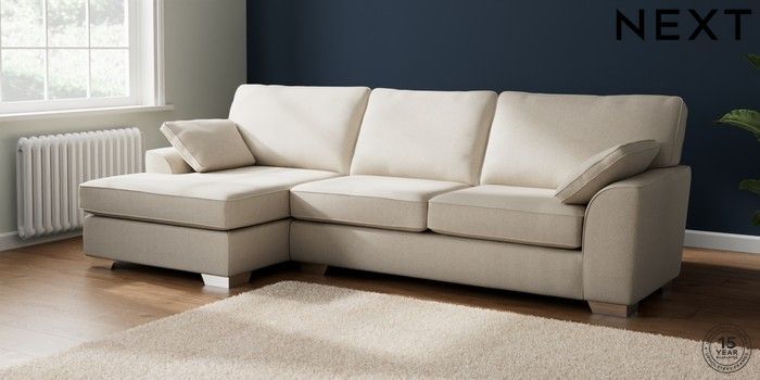 7.2.6 Buy Stamford Large Sofa Chaise - Left Hand Tweedy Chenille Oyster Large Square Angle - Chrome Metal from the Next UK online shop Click here to use our accessible website