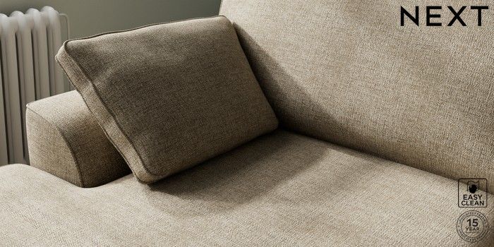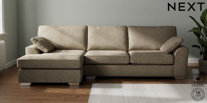 7.3.1 Buy Stamford Large Sofa Chaise - Left Hand Woven Chenille Easy Clean Mid Natural Large Square Angle - Chrome Metal from the Next UK online shop Click here to use our accessible website