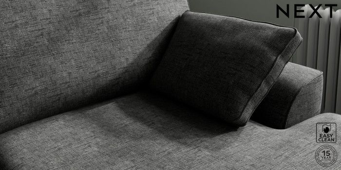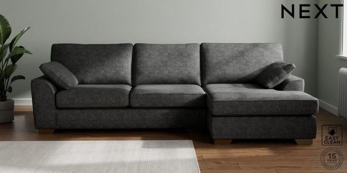 7.3.1 Buy Stamford Large Sofa Chaise - Right Hand Boucle Weave Easy Clean Charcoal Grey Large Square Angle - Brushed Brass from the Next UK online shop Click here to use our accessible website