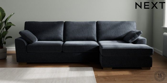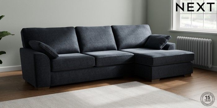 7.2.6 Buy Stamford Large Sofa Chaise - Right Hand Boucle Chenille Dark Slate Blue Large Square Angle - Mid from the Next UK online shop Click here to use our accessible website