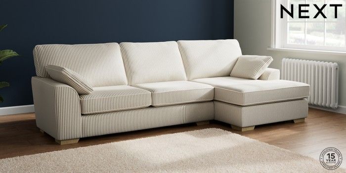 7.3.1 Buy Stamford Large Sofa Chaise - Right Hand Chenille Stripe Moss Green Large Square Angle - Light from the Next UK online shop Click here to use our accessible website