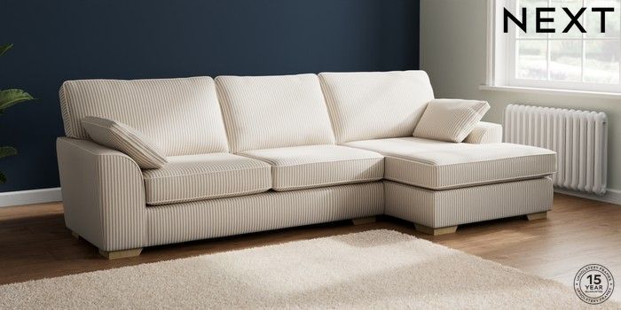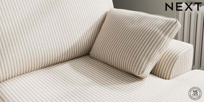 7.3.1 Buy Stamford Large Sofa Chaise - Right Hand Chenille Stripe Natural Large Square Angle - Light from the Next UK online shop Click here to use our accessible website