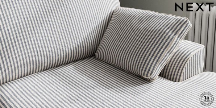 7.3.1 Buy Stamford Large Sofa Chaise - Right Hand Chenille Stripe Slate Blue Large Square Angle - Brushed Brass from the Next UK online shop Click here to use our accessible website