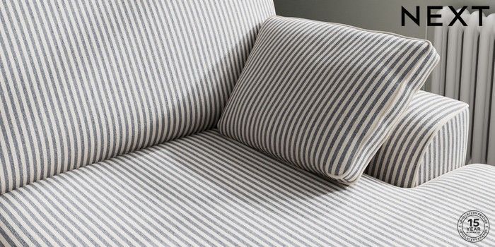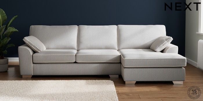 7.3.1 Buy Stamford Large Sofa Chaise - Right Hand Chenille Stripe Slate Blue Large Square Angle - Chrome Metal from the Next UK online shop Click here to use our accessible website