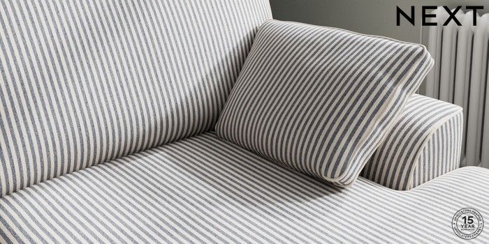 7.3.1 Buy Stamford Large Sofa Chaise - Right Hand Chenille Stripe Slate Blue Large Square Angle - Dark from the Next UK online shop Click here to use our accessible website