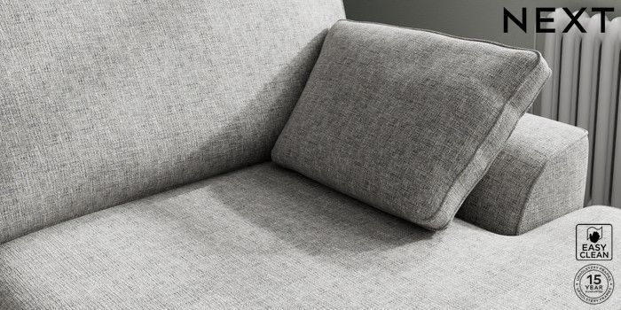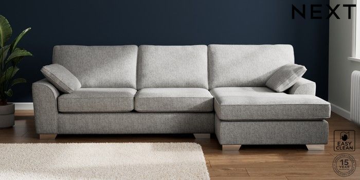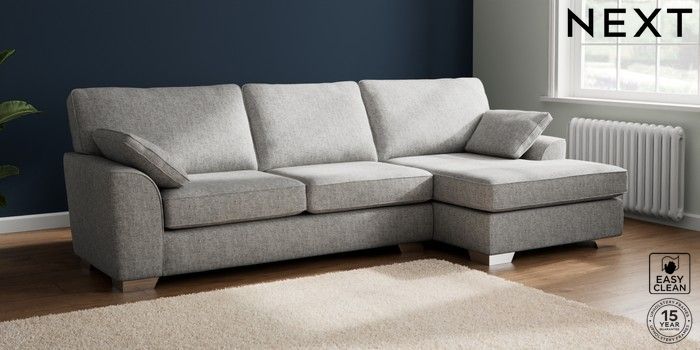 7.2.10 Buy Stamford Large Sofa Chaise - Right Hand Chunky Boucle Easy Clean Light Grey Large Square Angle - Chrome Metal from the Next UK online shop Click here to use our accessible website