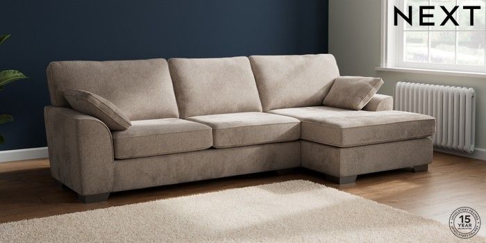 7.3.1 Buy Stamford Large Sofa Chaise - Right Hand Chunky Chenille Light Dove Large Square Angle - Gunmetal from the Next UK online shop Click here to use our accessible website