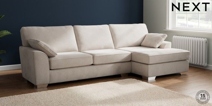 7.3.1 Buy Stamford Large Sofa Chaise - Right Hand Chunky Chenille Oyster Large Square Angle - Chrome Metal from the Next UK online shop Click here to use our accessible website