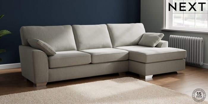 7.3.1 Buy Stamford Large Sofa Chaise - Right Hand Chunky Texture Dove Large Square Angle - Chrome Metal from the Next UK online shop Click here to use our accessible website
