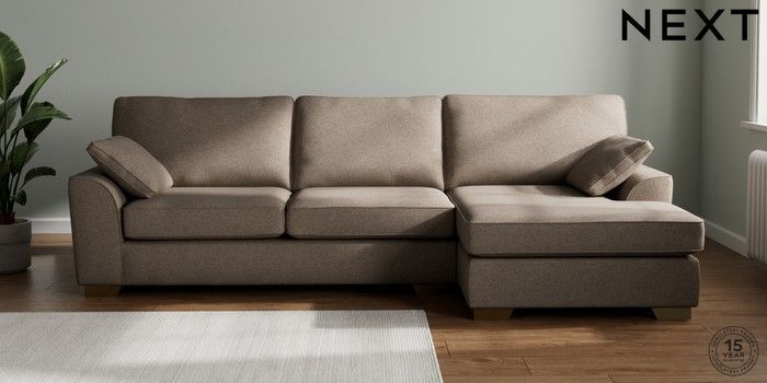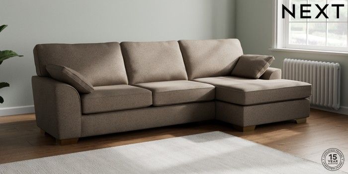 7.3.1 Buy Stamford Large Sofa Chaise - Right Hand Chunky Weave Dark Natural Large Square Angle - Brushed Brass from the Next UK online shop Click here to use our accessible website