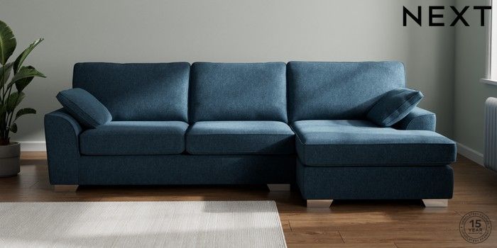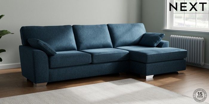 7.2.10 Buy Stamford Large Sofa Chaise - Right Hand Cotswold Chenille Dark Blue Large Square Angle - Chrome Metal from the Next UK online shop Click here to use our accessible website