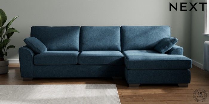 7.3.1 Buy Stamford Large Sofa Chaise - Right Hand Cotswold Chenille Dark Blue Large Square Angle - Gunmetal from the Next UK online shop Click here to use our accessible website