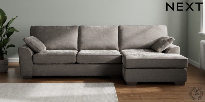 7.3.1 Buy Stamford Large Sofa Chaise - Right Hand Distressed Velour French Grey Large Square Angle - Gunmetal from the Next UK online shop Click here to use our accessible website