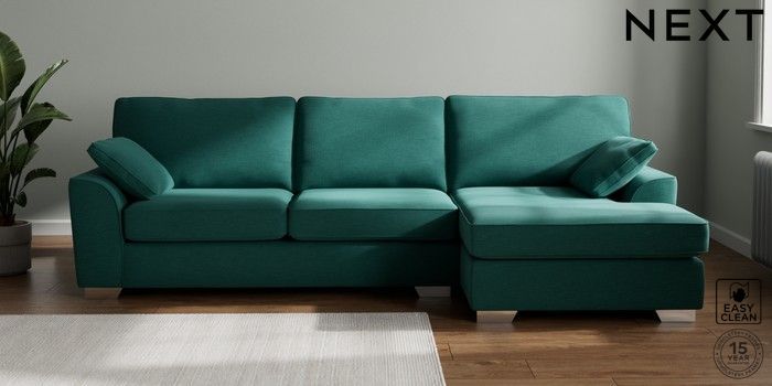 7.3.1 Buy Stamford Large Sofa Chaise - Right Hand Fine Chenille Easy Clean Dark Juniper Green Large Square Angle - Chrome Metal from the Next UK online shop Click here to use our accessible website