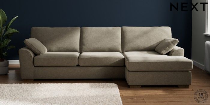 7.2.10 Buy Stamford Large Sofa Chaise - Right Hand Chunky Marl Light Olive Green Large Square Angle - Mid from the Next UK online shop Click here to use our accessible website