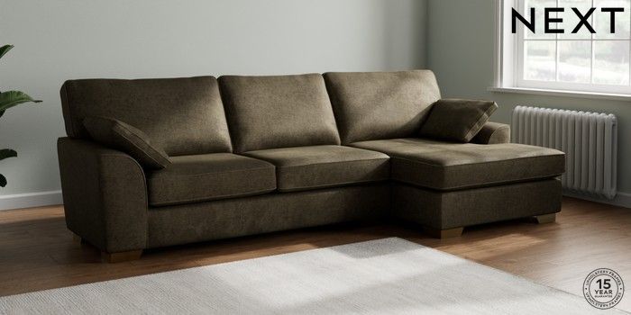 7.2.6 Buy Stamford Large Sofa Chaise - Right Hand Plush Chenille Moss Green Large Square Angle - Brushed Brass from the Next UK online shop Click here to use our accessible website