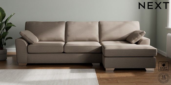 7.3.1 Buy Stamford Large Sofa Chaise - Right Hand Fine Chenille Easy Clean Mid Taupe Brown Large Square Angle - Chrome Metal from the Next UK online shop Click here to use our accessible website