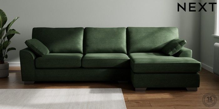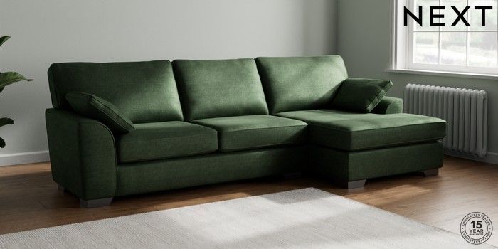 7.3.1 Buy Stamford Large Sofa Chaise - Right Hand Luxe Chenille Dark Green Large Square Angle - Gunmetal from the Next UK online shop Click here to use our accessible website
