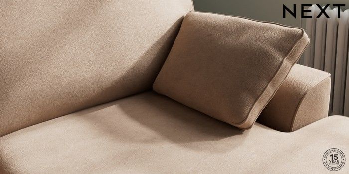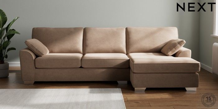 7.3.1 Buy Stamford Large Sofa Chaise - Right Hand Luxe Chenille Mid Natural Large Square Angle - Chrome Metal from the Next UK online shop Click here to use our accessible website