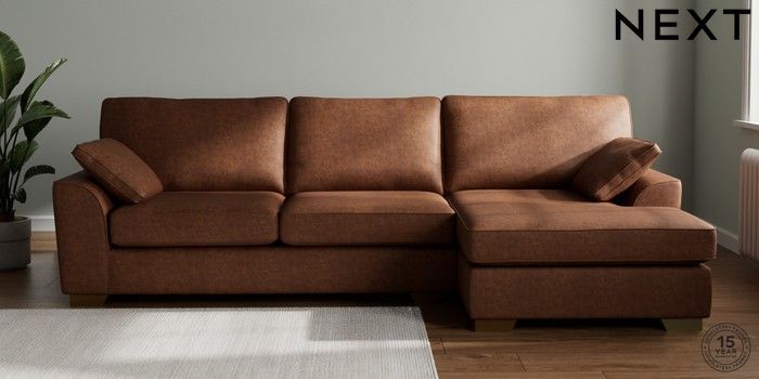 7.3.1 Buy Stamford Large Sofa Chaise - Right Hand Monza Faux Leather Easy Clean Chestnut Brown Large Square Angle - Brushed Brass from the Next UK online shop Click here to use our accessible website
