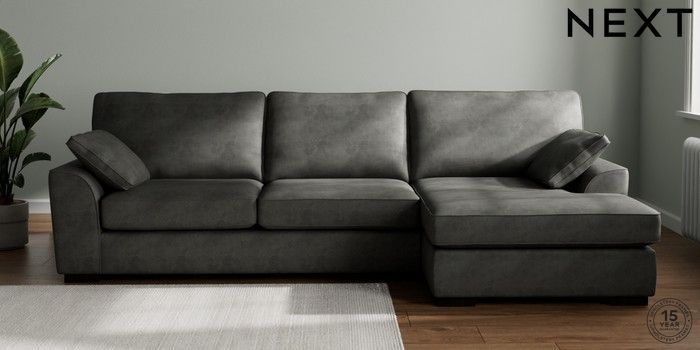 7.3.1 Buy Stamford Large Sofa Chaise - Right Hand Monza Faux Leather Easy Clean Dark Grey Large Square Angle - Dark from the Next UK online shop Click here to use our accessible website