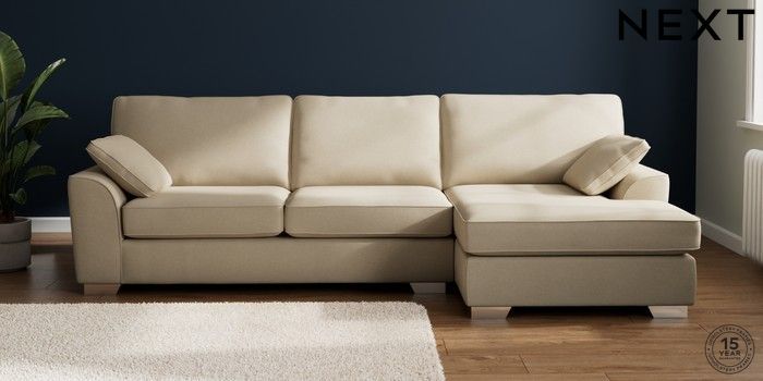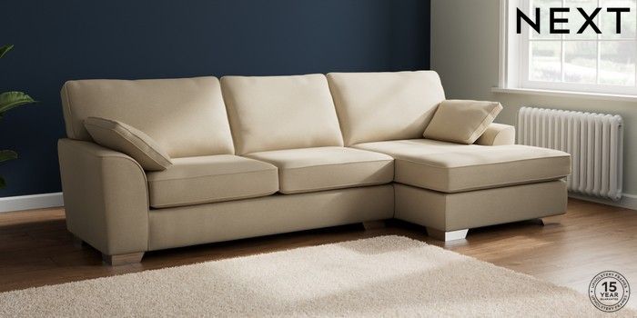 7.3.1 Buy Stamford Large Sofa Chaise - Right Hand Natural Mix Light Natural Large Square Angle - Chrome Metal from the Next UK online shop Click here to use our accessible website