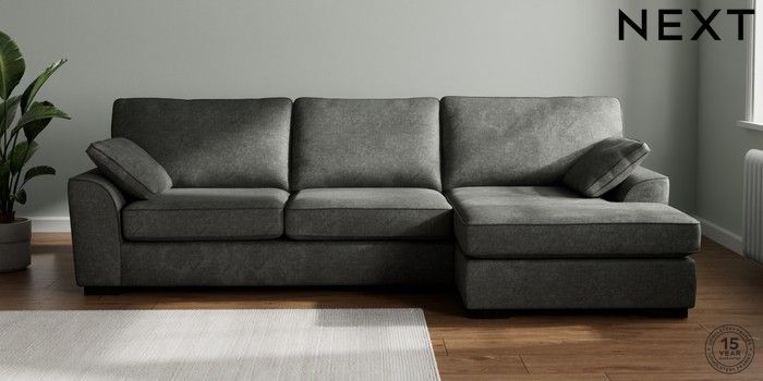7.2.10 Buy Stamford Large Sofa Chaise - Right Hand Plush Chenille Dark Grey Large Square Angle - Dark from the Next UK online shop Click here to use our accessible website