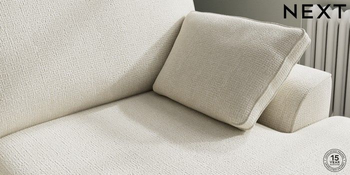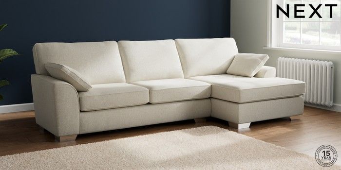 7.2.10 Buy Stamford Large Sofa Chaise - Right Hand Chunky Texture Oyster Large Square Angle - Chrome Metal from the Next UK online shop Click here to use our accessible website