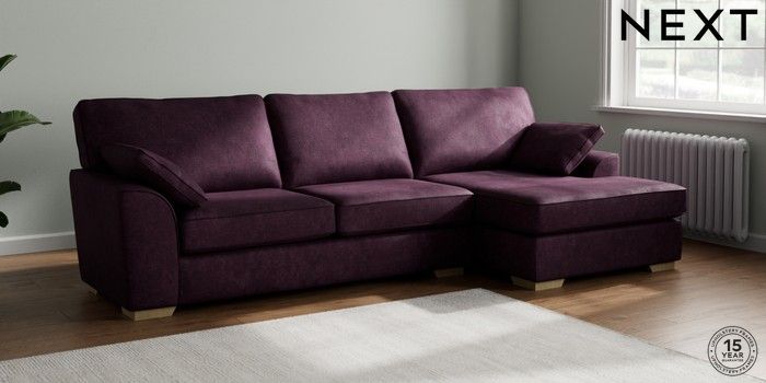7.2.10 Buy Stamford Large Sofa Chaise - Right Hand Plush Chenille Dark Plum Purple Large Square Angle - Light from the Next UK online shop Click here to use our accessible website