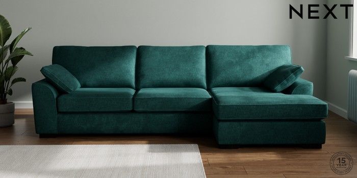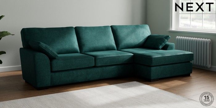 7.2.10 Buy Stamford Large Sofa Chaise - Right Hand Plush Chenille Dark Teal Green Large Square Angle - Dark from the Next UK online shop Click here to use our accessible website