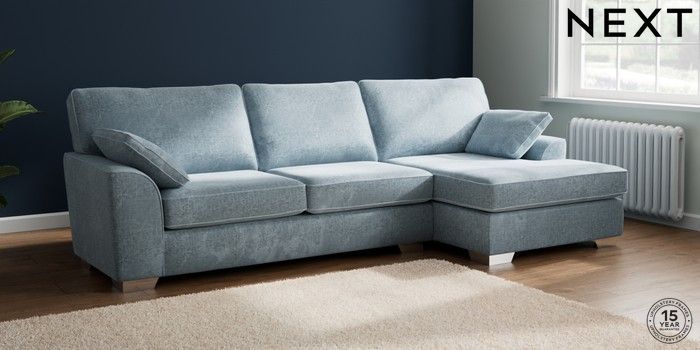 7.2.6 Buy Stamford Large Sofa Chaise - Right Hand Plush Chenille Light Blue Large Square Angle - Chrome Metal from the Next UK online shop Click here to use our accessible website
