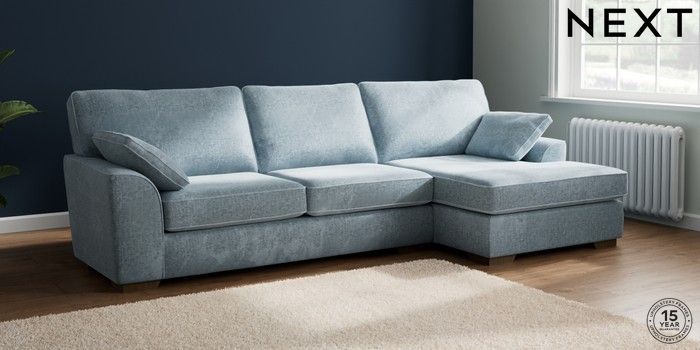 7.2.6 Buy Stamford Large Sofa Chaise - Right Hand Plush Chenille Light Blue Large Square Angle - Mid from the Next UK online shop Click here to use our accessible website