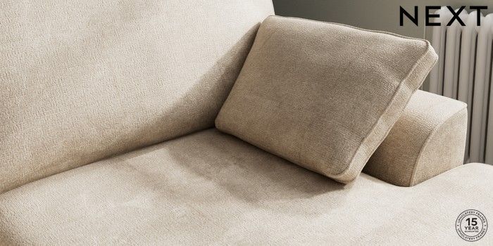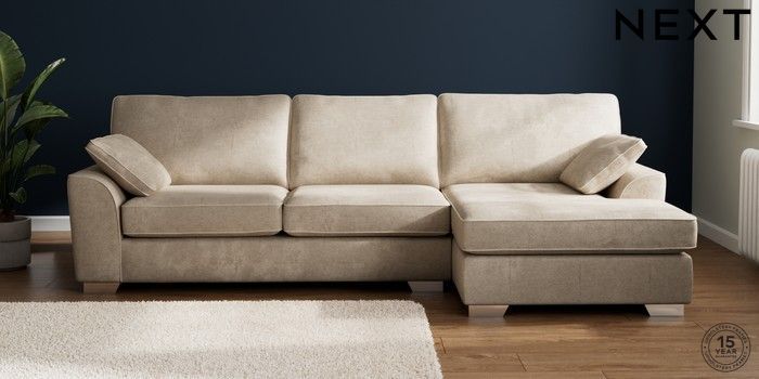 7.3.1 Buy Stamford Large Sofa Chaise - Right Hand Plush Chenille Light Natural Large Square Angle - Chrome Metal from the Next UK online shop Click here to use our accessible website