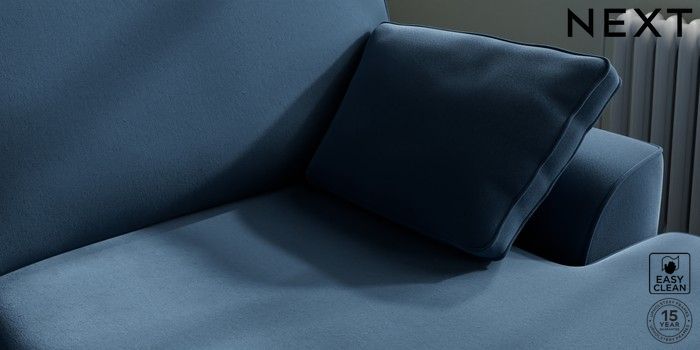7.3.1 Buy Stamford Large Sofa Chaise - Right Hand Plush Velvet Easy Clean Airforce Blue Large Square Angle - Brushed Brass from the Next UK online shop Click here to use our accessible website