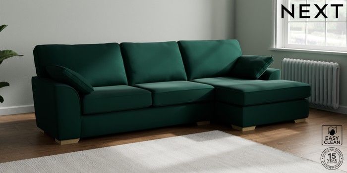 6.12.1 Buy Stamford Large Sofa Chaise - Right Hand Plush Velvet Easy Clean Bottle Green Large Square Angle - Light from the Next UK online shop Click here to use our accessible website