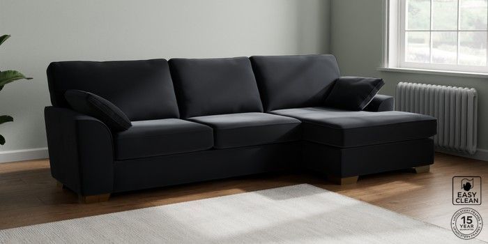 6.12.1 Buy Stamford Large Sofa Chaise - Right Hand Plush Velvet Easy Clean Charcoal Grey Large Square Angle - Brushed Brass from the Next UK online shop Click here to use our accessible website