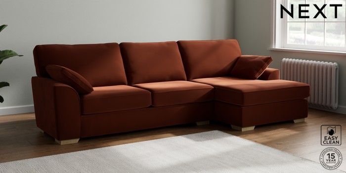 6.12.1 Buy Stamford Large Sofa Chaise - Right Hand Plush Velvet Easy Clean Ginger Orange Large Square Angle - Light from the Next UK online shop Click here to use our accessible website