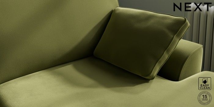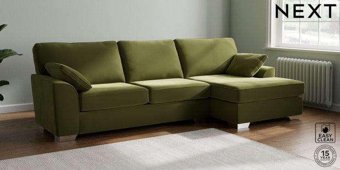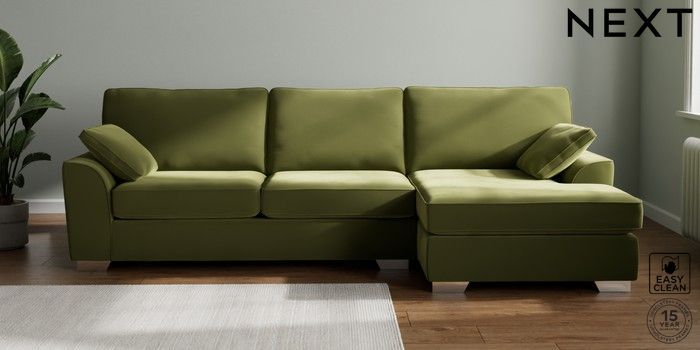 7.3.1 Buy Stamford Large Sofa Chaise - Right Hand Plush Velvet Easy Clean Mid Olive Green Large Square Angle - Chrome Metal from the Next UK online shop Click here to use our accessible website