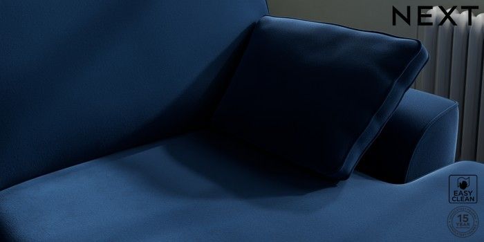 7.3.1 Buy Stamford Large Sofa Chaise - Right Hand Plush Velvet Easy Clean Navy Blue Large Square Angle - Brushed Brass from the Next UK online shop Click here to use our accessible website