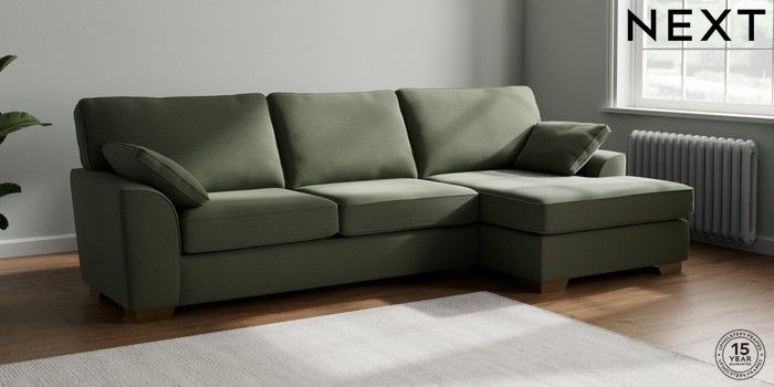 7.3.1 Buy Stamford Large Sofa Chaise - Right Hand Relaxed Linen Look Dark Green Large Square Angle - Brushed Brass from the Next UK online shop Click here to use our accessible website