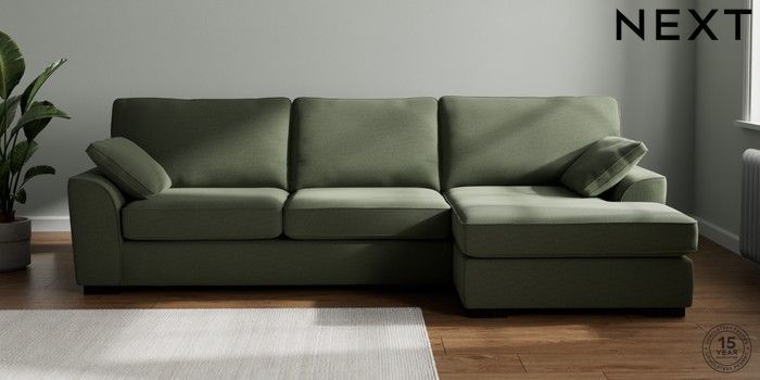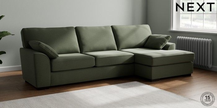 7.2.10 Buy Stamford Large Sofa Chaise - Right Hand Relaxed Linen Look Dark Green Large Square Angle - Dark from the Next UK online shop Click here to use our accessible website