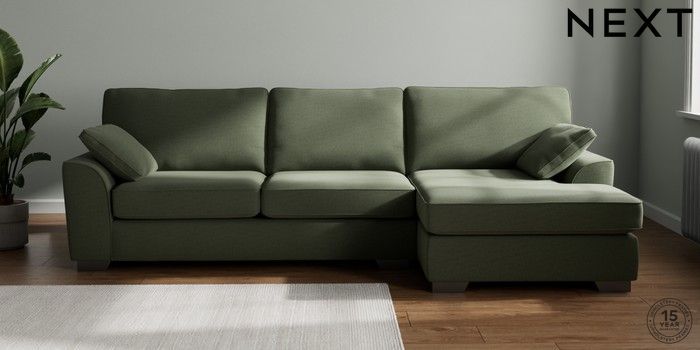 7.3.1 Buy Stamford Large Sofa Chaise - Right Hand Relaxed Linen Look Dark Green Large Square Angle - Gunmetal from the Next UK online shop Click here to use our accessible website