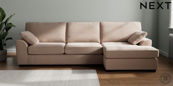 7.3.1 Buy Stamford Large Sofa Chaise - Right Hand Relaxed Linen Look Mid Natural Large Square Angle - Dark from the Next UK online shop Click here to use our accessible website