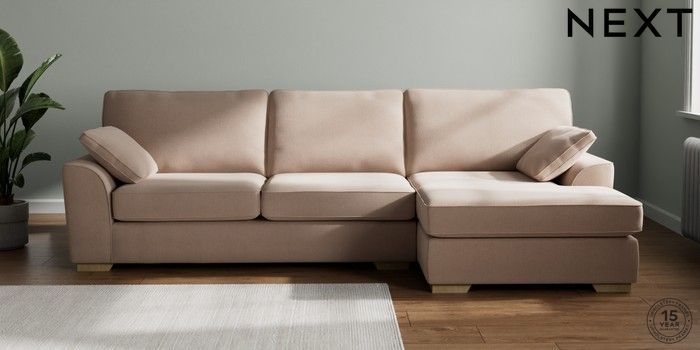 7.2.10 Buy Stamford Large Sofa Chaise - Right Hand Relaxed Linen Look Mid Natural Large Square Angle - Light from the Next UK online shop Click here to use our accessible website