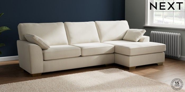 7.3.1 Buy Stamford Large Sofa Chaise - Right Hand Relaxed Linen Look Oyster Large Square Angle - Brushed Brass from the Next UK online shop Click here to use our accessible website