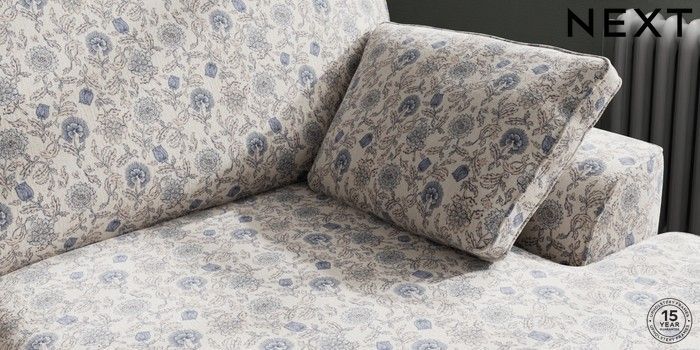 7.3.1 Buy Stamford Large Sofa Chaise - Right Hand Relaxed Linen Look Print Woodblock Floral Blue Large Square Angle - Brushed Brass from the Next UK online shop Click here to use our accessible website