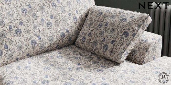 7.3.1 Buy Stamford Large Sofa Chaise - Right Hand Relaxed Linen Look Print Woodblock Floral Blue Large Square Angle - Gunmetal from the Next UK online shop